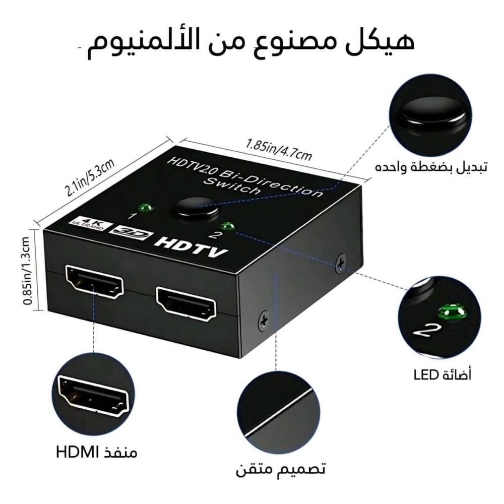 نظرة عامة : كل من يملك تلفزيون قد يعاني من قلة المنافذ التي فيه كمنافذ USB أو منافذ HDMI وتعتبر منافذ HDMI هي الأكثر حاجة إليها من أي منفذ اخر حيث يمكنك من خلالها تشغيل الكثير من الأجهزة مثل جهاز الاستقبال وأجهزة الألعاب والسماعات الخارجية وأضائة RPG التي تأتي بالخلف والكثير من الأجهزة الآخرى ومن الأكيد ان المنافذ الموجودة بالتلفزيون لا تكفي لكل هذه الأجهزة ولاكن معا جهاز توسيع منفذ HDMI الى منفذين HDMI صار بأمكانك ربط العديد من الأجهزة دون فصل الأسلاك والتبديل بينهم من خلال الجهاز الرائع