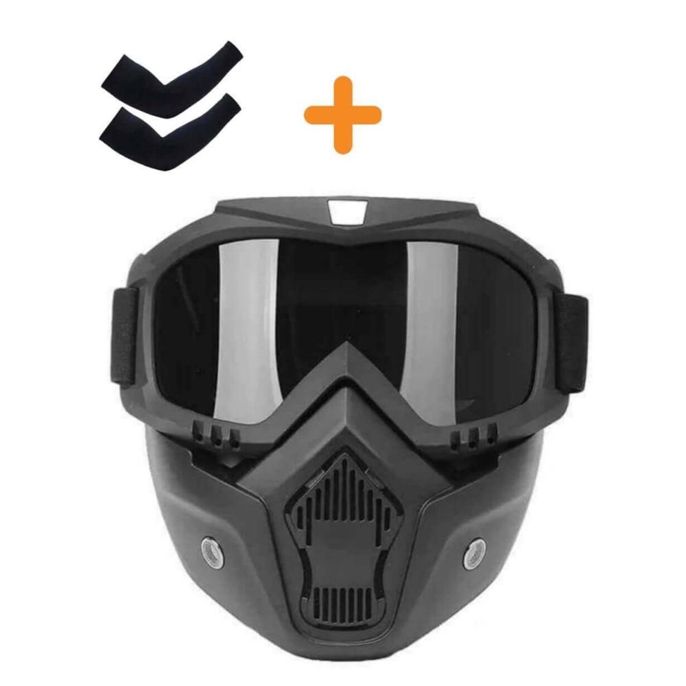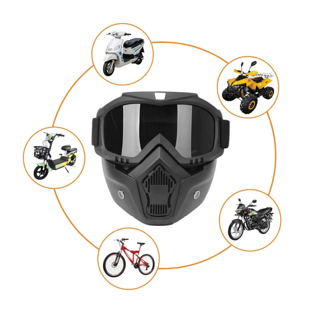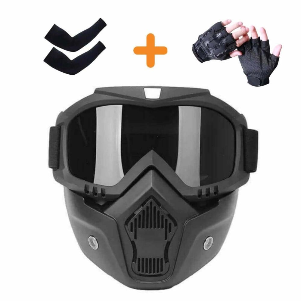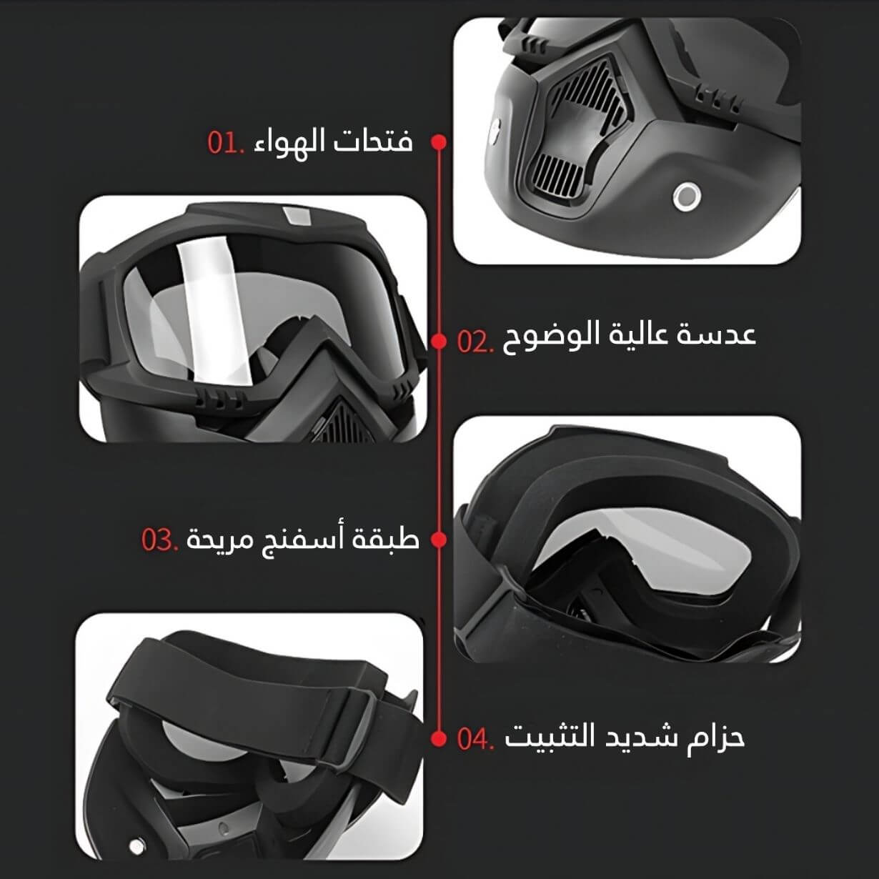 نظرة عامة : قناع موتوكروس هو قناع للوجه يأتي بتصميم فريد وقد أشتهرة بين قائدين الدراجات النارية وخاصةً دراجات السباق منها وبعد مدة أصبح قائدين الدراجات الهوائية والسكوترات بأرتدائه حيث يوفر قناع الوجه راحة أثناء القيادة ويمنع الهواء والأتربة إلتي تأثر على العين والجميل حقاً أن النظارات قابلة للفصل ويمكنك أرتدائها دون الجزء السفلي من قناع موتوكروس