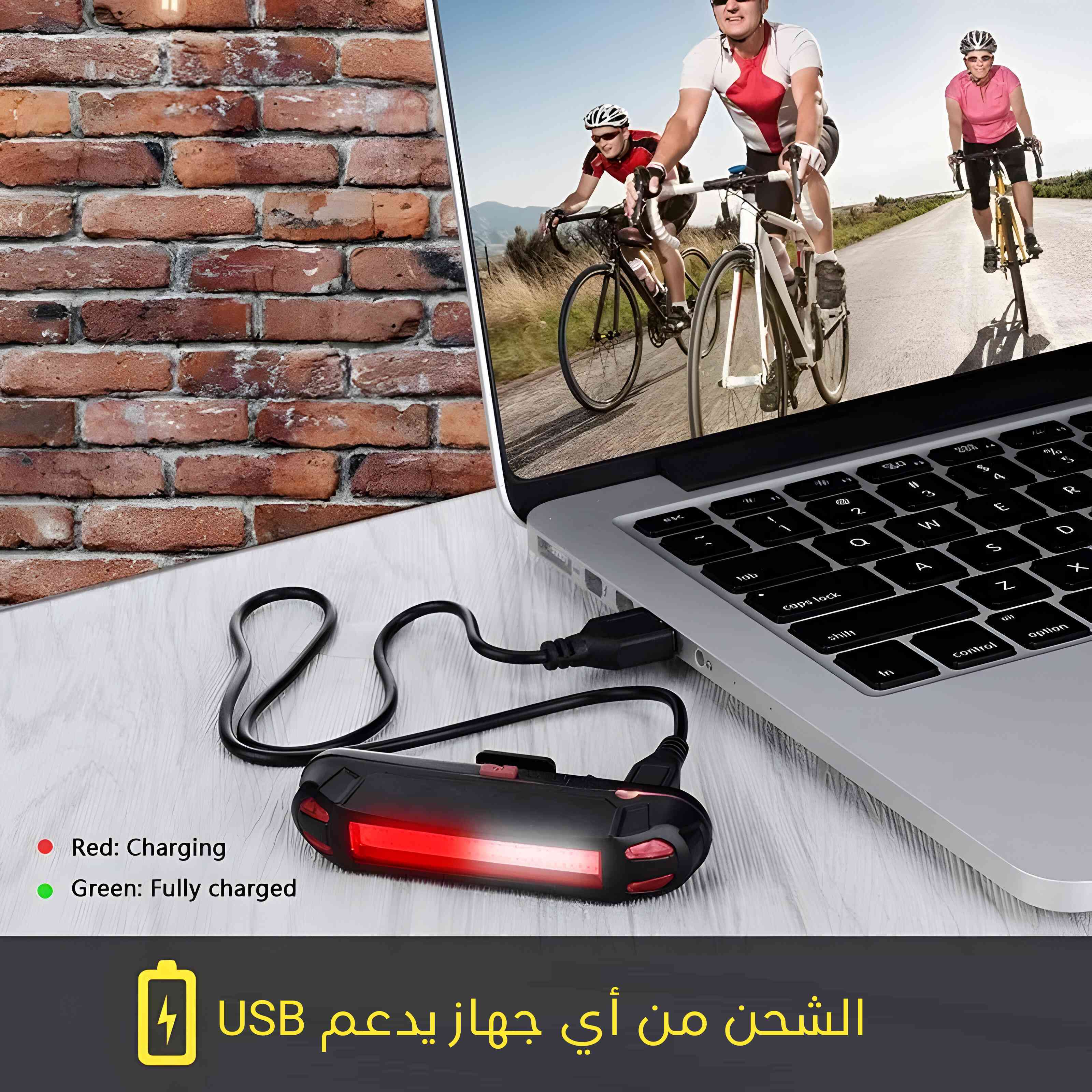 ضوء تحذير LED عالي الوضوح للدراجات الهوائية والسكوترات الكهربائية : ضوء LED عالي الوضوح لتنبيه السائقين من الخلف يعمل ببطارية داخلية قابلة لأعادة الشحن والأستخدام عدة مرات ، حزام مرن قابل لتمدد ليناسب مختلف الدراجات الهوائية والسكوترات الكهربائية وغيرها الكثير