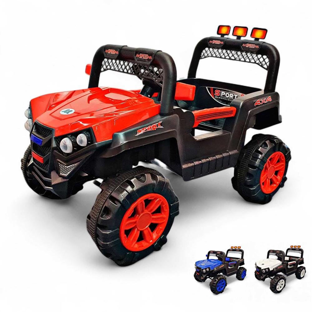سيارة أطفال كهربائية جيب ميني بمحركين مناسبة لعمر 2 - 5 سنوات : تعمل على البطارية بالشحن الكهربائي و يتم التحكم بها من خلال رموت كونترول أو يدوي من خلا دواسة كهربائية تأتي سيارة الأطفال الكهربائية بمحركين لتحريك السيارة